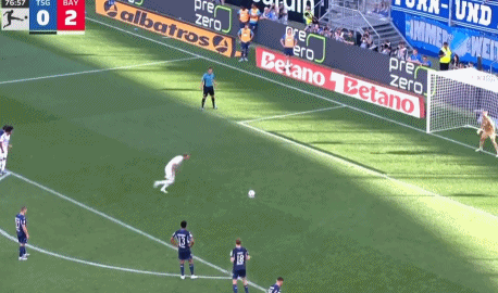 客场对阵霍芬海姆,凯恩延续了出色的状态。比赛的第43分钟,卡尔开出右侧角球,凯恩禁区中路右脚顺势扫射破门,打破了比赛僵局。